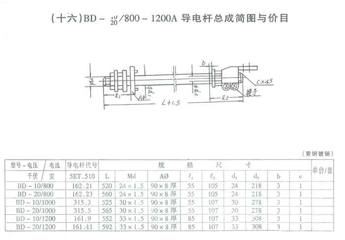 型號:BD、G-1、10、20、35、40KV/300、400、600 A 技術(shù): 1.表面鍍錫 2.材質(zhì)、導(dǎo)體-T2Y、配件-H59